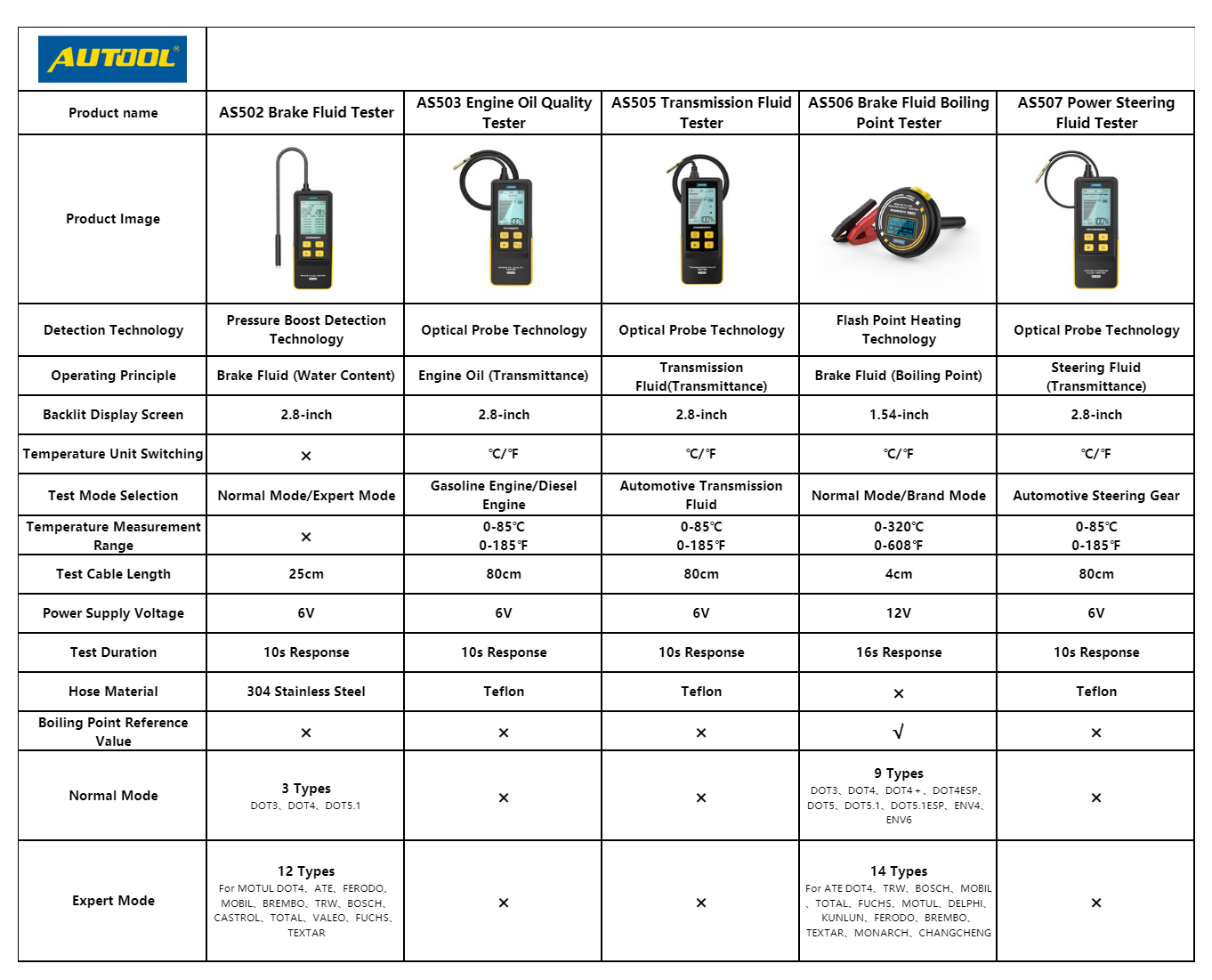 AUTOOL AS502 Brake Fluid Tester Features
