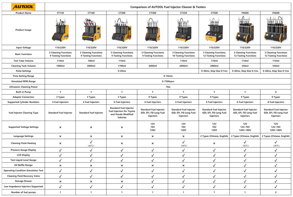 AUTOOL CT450 GDI Fuel Injector Cleaner & Tester Machine Functions