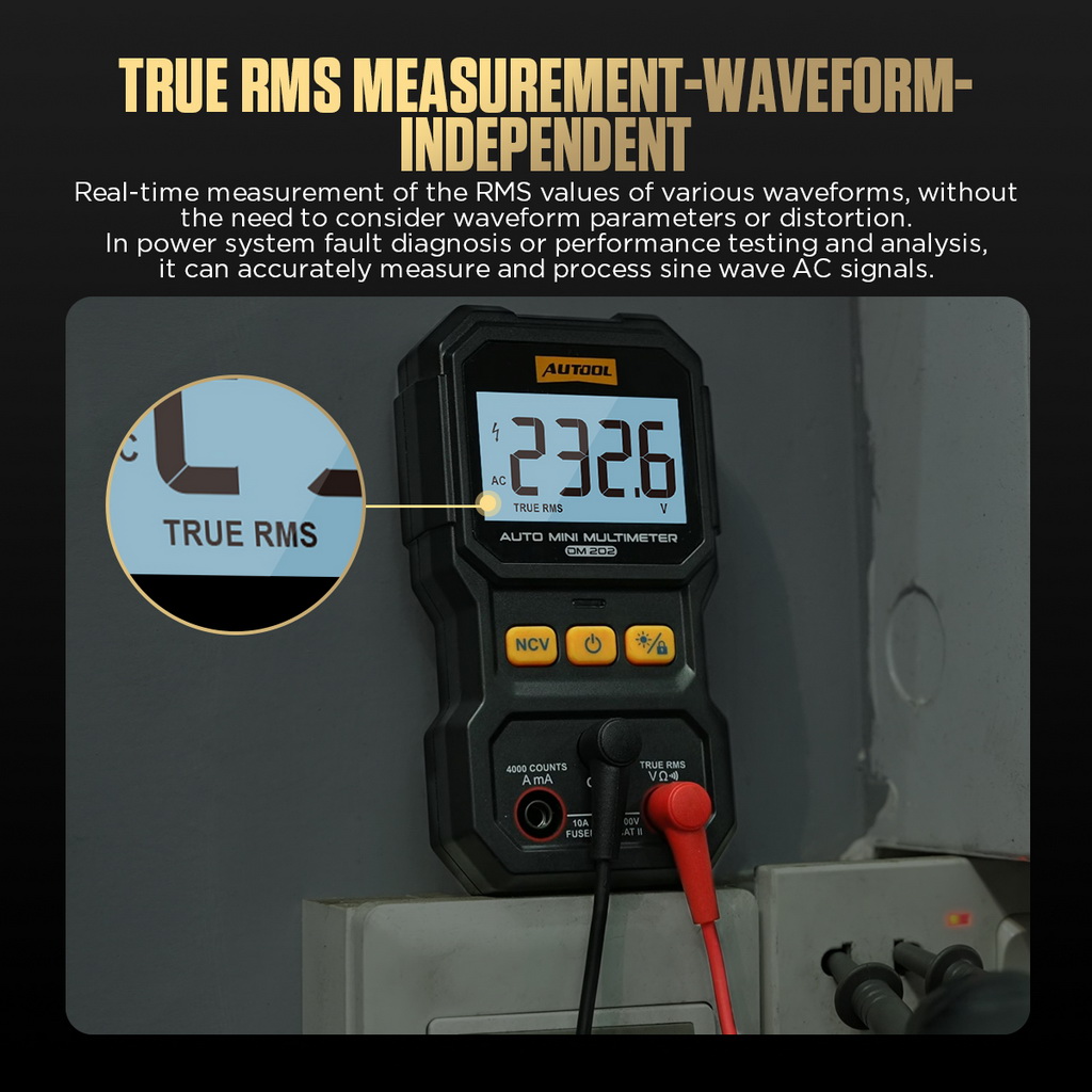 Compared to ordinary average value multimeters, the AUTOOL DM202 provides more accurate measurement results in maintenance and testing. The device has a true RMS measurement function, which can accurately measure voltage and current of complex waveforms and maintain high-precision readings even in non-standard sine wave environments.