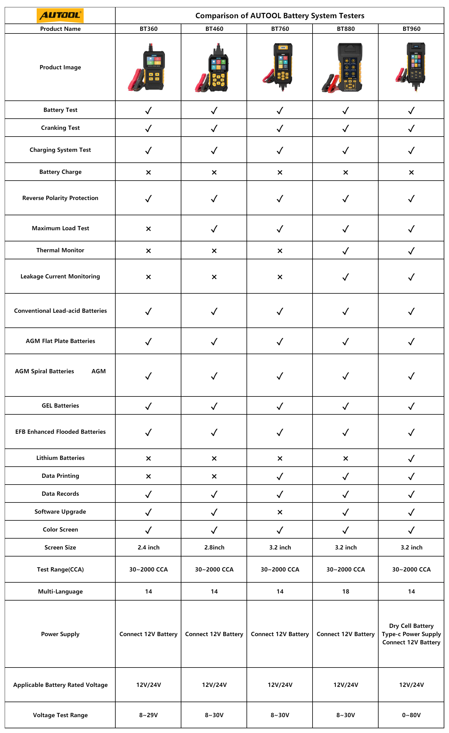 Multiple Testing Functions: battery test function, cranking test function, charging test function, maximum load test, reverse polarity protection function, etc. These functions make it easy for car owners to perform routine maintenance, while also providing professionals with the ability to test battery voltage under load conditions.