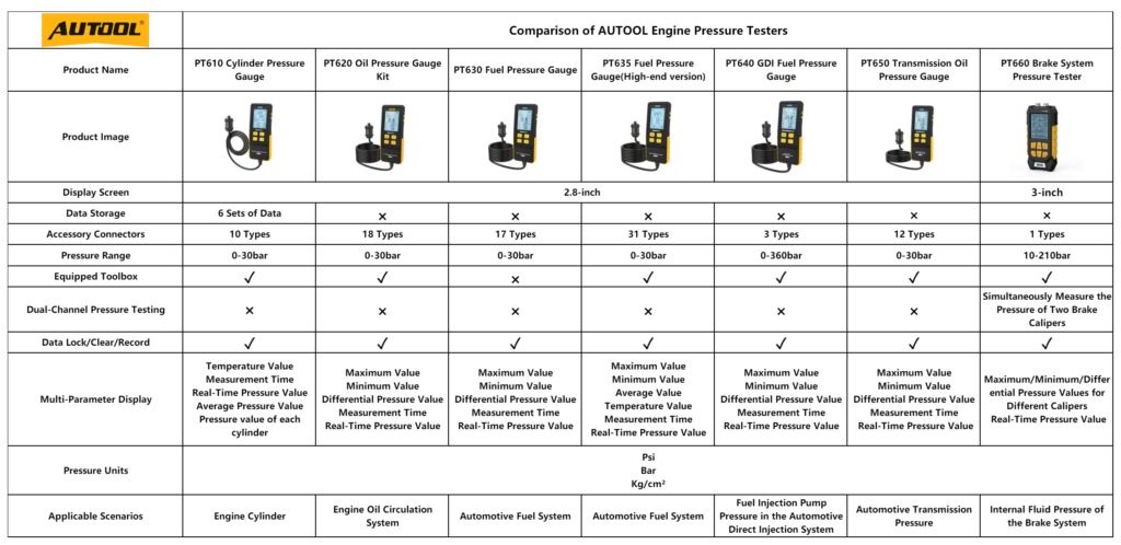 AUTOOL PT620 Engine Oil Pressure Gauge Features