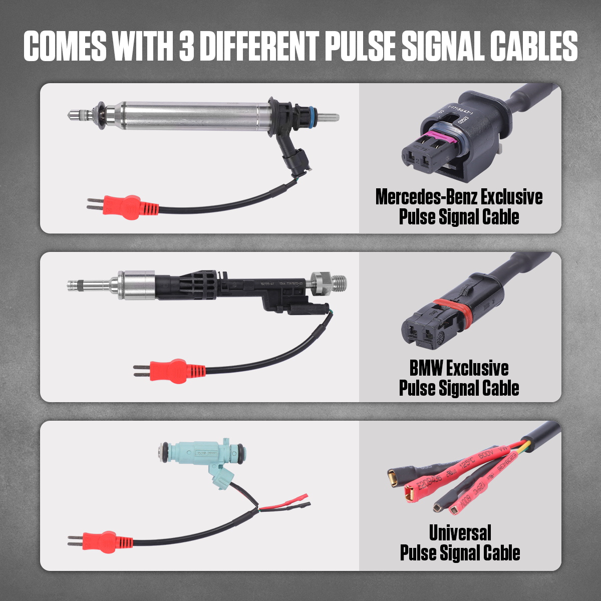 Wide Compatibility: Compatible with various types of fuel injectors, including GDI, EFI, FSI, etc. It supports cleaning and testing of both standard injectors and three voltage driving modes (12V, 70V, 120V), providing professional solutions for the majority of vehicle models on the market.