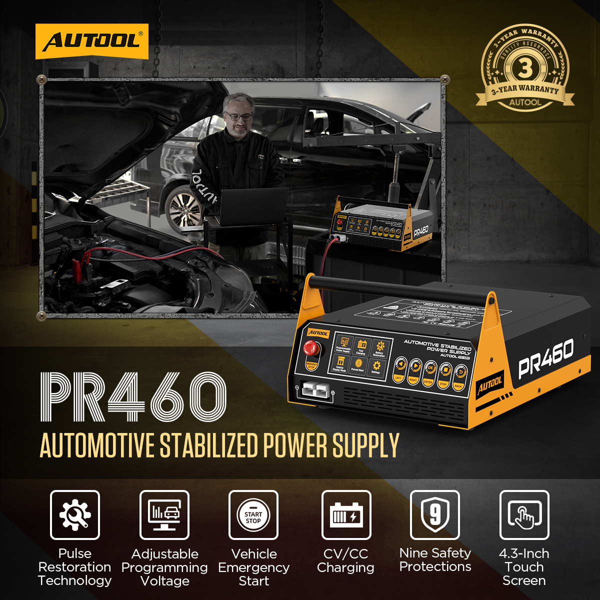 The AUTOOL PR460 Car Power Inverter is a high-quality, high-performance professional 3-IN-1 inverter programming power supply. It provides a stable power source for vehicles during ECU programming and also features functions such as battery restoration and fast charging. By switching modes, it can also be used as a charger and for jump-starting 12V car batteries.
